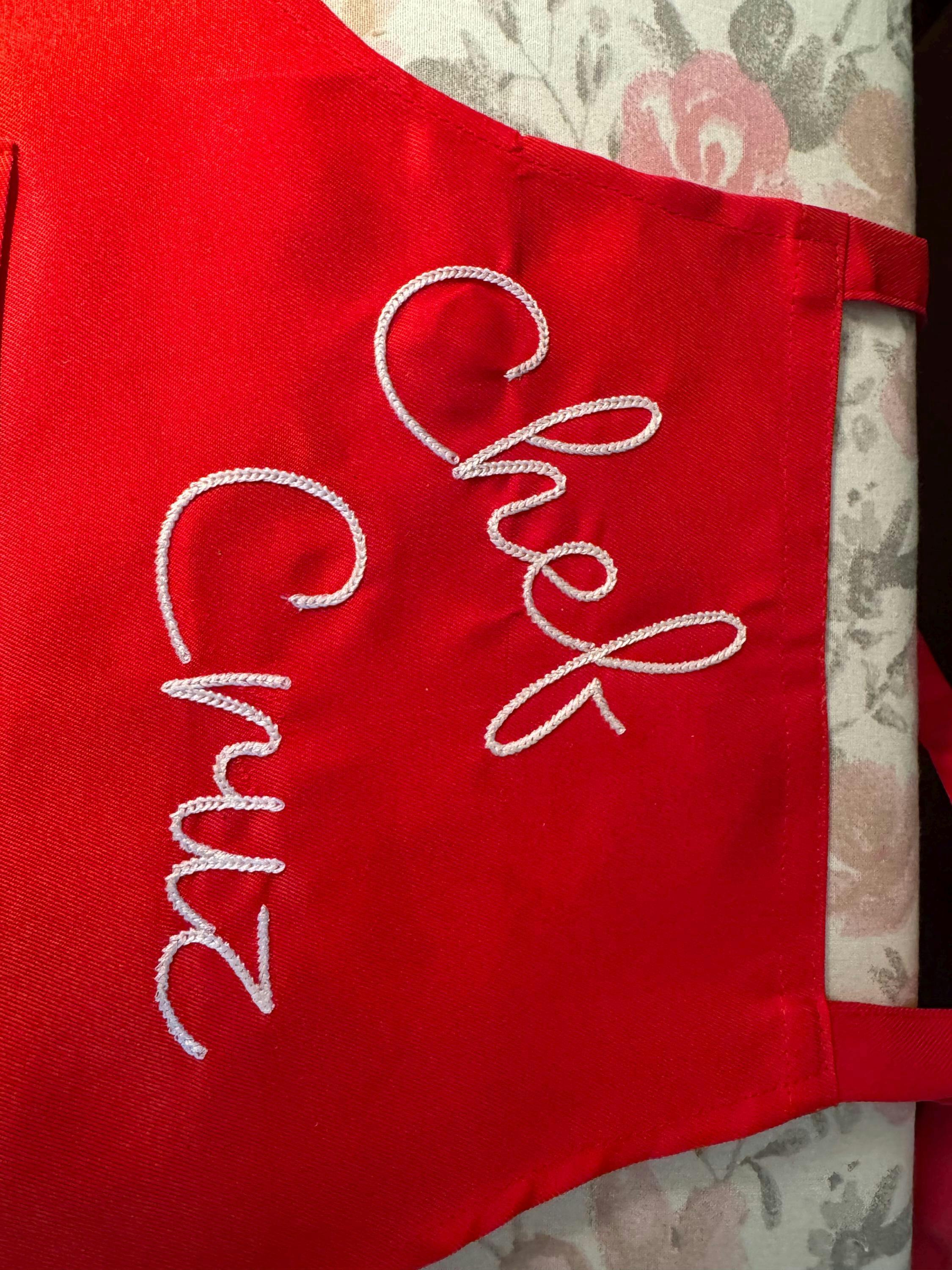 Photograph of stitched out Chain Stitch embroidery font